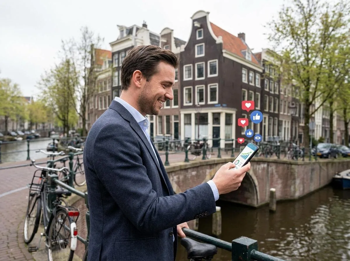 Vergeet dure social media bureaus zonder resultaat. Wij zetten een heldere simpele structuur voor social media, content en advertenties zodat uw kantoor consistent zichtbaar blijft bij woningbezitters in de regio.
