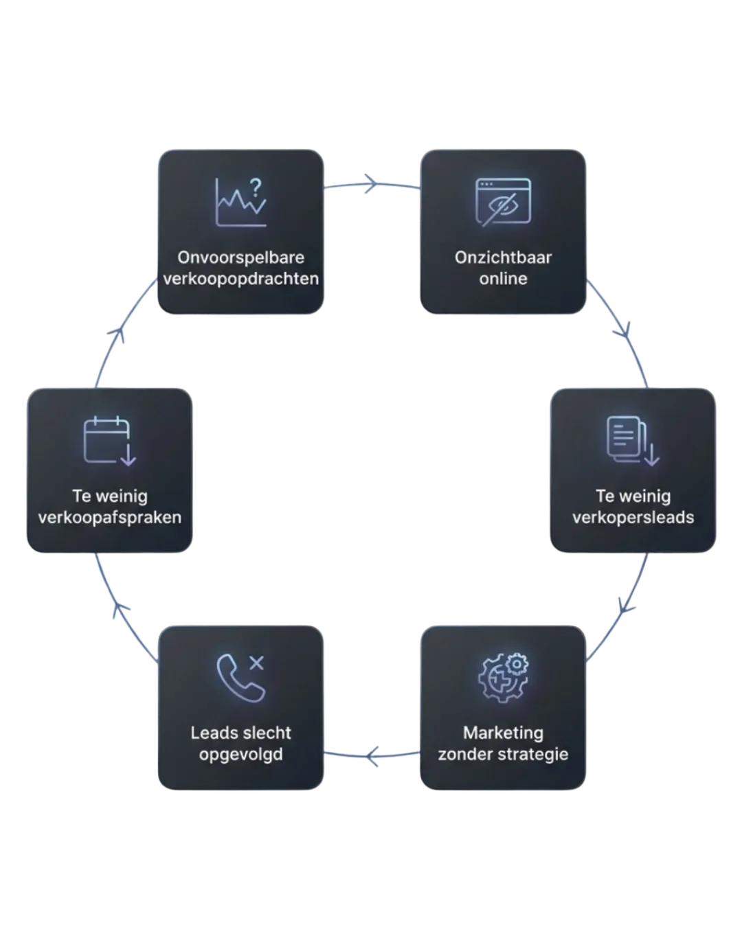 Veel bedrijven investeren in marketing, social media en software. Maar zonder strategie en opvolging blijft de instroom van nieuwe opdrachten vaak wisselend. Daarom implementeren wij een compleet systeem dat zichtbaarheid, leadgeneratie en opvolging samenbrengt.